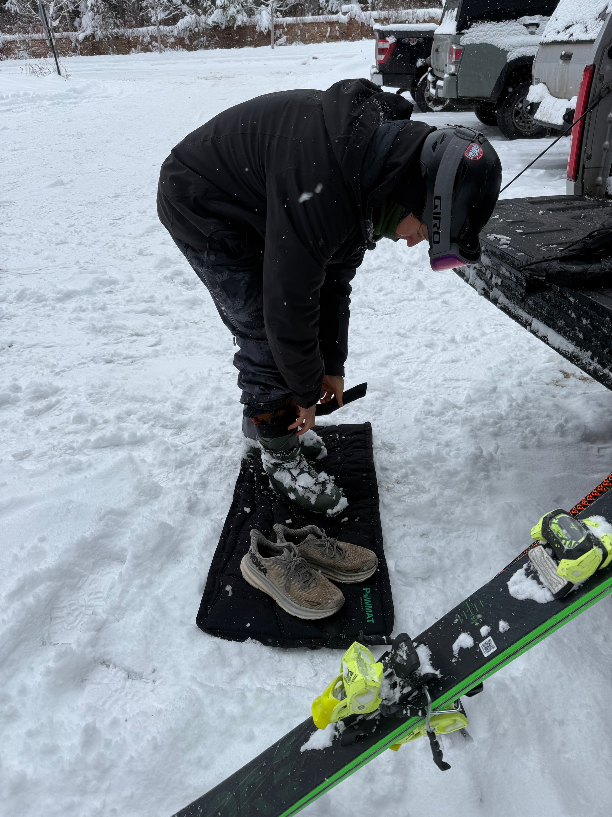 The PowMat is your personal basecamp, designed to give you a clean, dry, and comfortable surface to change into your ski or snowboard boots or any gear anywhere. Built for all conditions, it protects your feet and gear from cold, wet, dirty parking lots so you can focus on the adventure ahead.